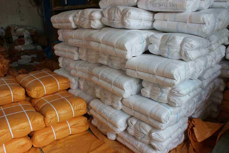 最后進(jìn)行切割、熱合工序完成內(nèi)襯袋的生產(chǎn),最后進(jìn)行套袋。